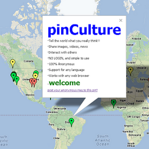Time to change how we interact with information and each other. Communicate with any culture around the globe. Share ideas, images, videos, or anything else you might think of. Comment on global events, express your opinions anonymously. This applications can be accessed from any device by going to www.pinculture.com, we support all languages around the globe, in any culture. All you need is a web-browser and an internet enabled device. Pins represent individuals, sharing details about a specific location. Once a pin is added to PinCulture, all other users around the globe are able to see and interact with the pin by replying with their comments. This allows anonymous communication. This application can also be privatized, that only granted users are able to interact with each other. An example would be a family of 10 members spread-out across our planet, communicating with each other in a private PinCulture.Download PinCulture 1.0 APK